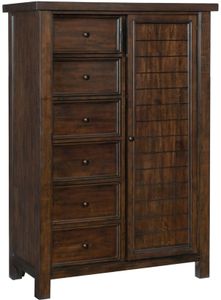 The transitional framing of the Logandale Collection allows for versatile placement within a number of classic bedroom decors, making a perfect choice for your home. A brown finish is utilized over mango veneer for subtle highlighting of its distinct grain. Dark finished metal knob and pull hardware front each drawer creating a complementing accent to the drawer fronts.