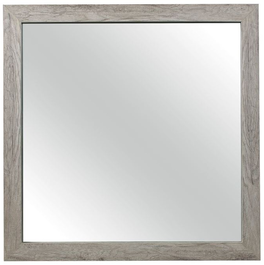 The modern lines of the Mandan collection are blended with transitional aesthetic to create a unique offering for your bedroom. Utilizing faux wood veneer creates the look of authentic wood planks with the gray finish further lending to the rusticated style of the mirror frame.Read More