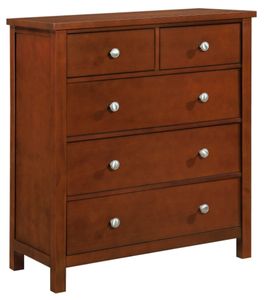 Enhance your bedroom’s organization with this elegant 5-drawer chest, meticulously crafted from high-quality pine veneer, wood, and engineered wood. The rich dark cherry finish provides a sophisticated, warm aesthetic that anchors any room with classic style. Featuring a vertical design to maximize floor space, this tall dresser offers ample storage for clothing and essentials.Read More