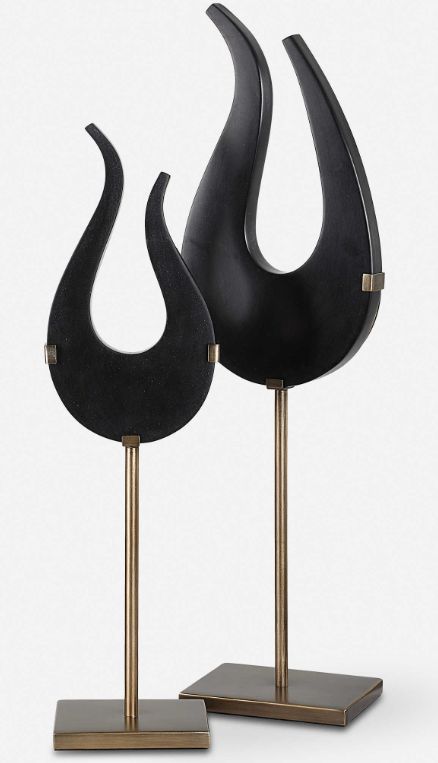 Sculptures are handcrafted from a man-made black stone, elevated a top brushed brass metal stands.. And this will be a great fit into your house and that gives a ample design on it.Read More