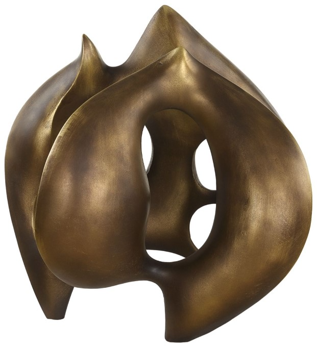 This is a visually captivating abstract bronze finished sculpture featuring smooth curves and multiple openings. Its flowing, organic form and polished finish give it a dynamic and modern aesthetic, making it an ideal centerpiece for contemporary spaces.Read More