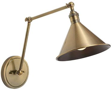 Tradition lines make this one light adjustable wall sconce in a rich oxidized antique brass finish with a metal cone shade a classic. With 1-60 watt max, Edison socket. Make a bold statement by incorporating this stunning lighting into your home.Read More