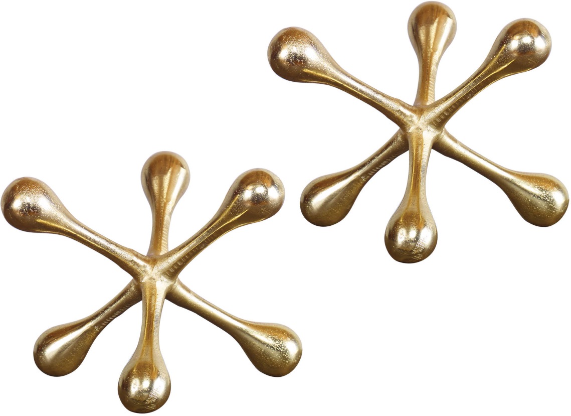 Set of two, cast aluminum decorative objects feature a brass finish.Read More
