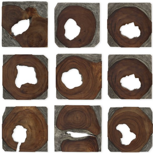 This set of nine wood wall pieces is crafted from 100% natural Suar wood in a dual dark coffee brown and rustic black carved finish. Due to each piece being individually handcrafted, natural variation will occur from piece to piece.Read More