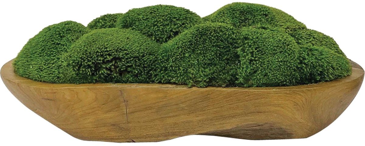 Beautifully preserved mounds of moss placed in a natural teak wood bowl. Because each is individually handcrafted, sizes may vary. Cracks and variations in the grain are natural to this type of wood.Read More