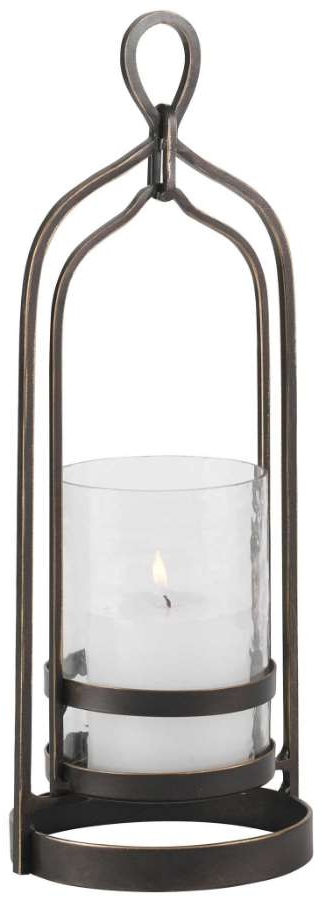Taking cues from Moroccan style, this candleholder is finished in dark bronze with gold rub-through details and a textured glass hurricane. One white 3"x 3" candle is included. Make a bold statement by incorporating this stunning home decor into your home.Read More