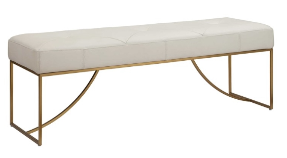 Elegant curves of the stainless steel base in plated brushed brass support the plush diamond tufted seat upholstered in ivory top grain leather. Because leather is a natural product, both texture and color will vary slightly, enhancing leather's uniqueness.Read More