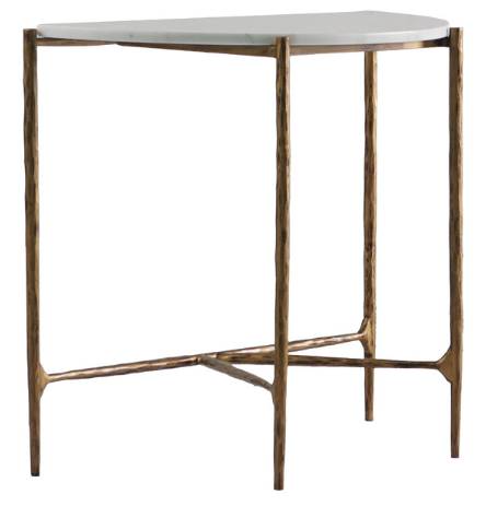 The Adria is a stunning addition to any home. The console features a beautiful half-moon-shaped Carrara marble top that is both elegant and functional, providing a durable surface for displaying decorative items. The natural veining of the marble adds to its unique character and complements the distressed brass finish of the frame.Read More