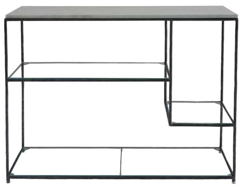 The Akira Collection provides beautiful pieces with Carrara Marble Accents, glass, and steel-forged Iron. The matching console table with a Carrara marble top is a stunning and sophisticated piece of furniture that will add a touch of luxury to any room.Read More