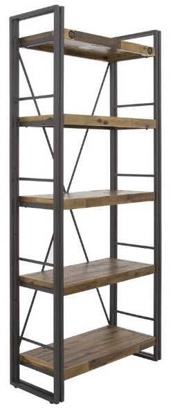 Austen Collection is one of the largest new collections from YHD. Its a Farmhouse meets Loft direction, which is so loved by many of our customers. Acacia planking is slightly darkened and features wide variety of natural wood tones, which will blend well in different setting and compliment existing furniture. Oversize bolts are placed in various points to tie the wood with the industrial look of the metal drawers and door fronts. Austen Collection offers a variety of items with different functionality such as shelving units in a few sizes, bar height tables, bar stools and chairs, various cabinets, occasional tables and accent mirrors. Austen Large Shelf features five 31in x 14in shelves and elegant metal tubing frame with cross supports in the back.