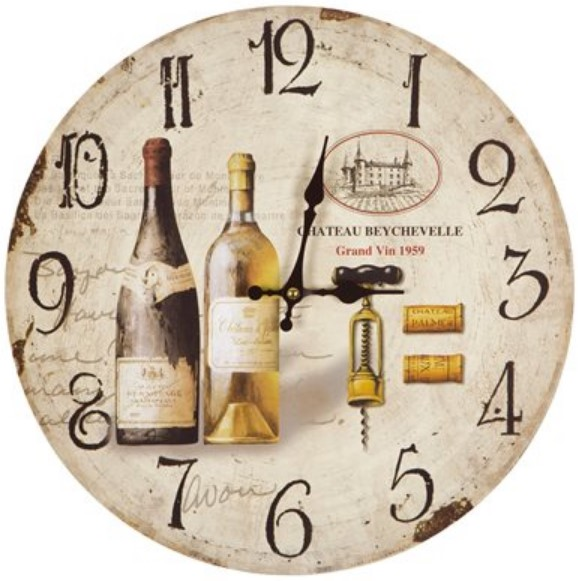There is also an emblem of a Chateau and block lettering with the name of the Chateau and Grand Vin 1959. Full of European chic this clock makes a great accent in a kitchen, dining room, or wine cellar.