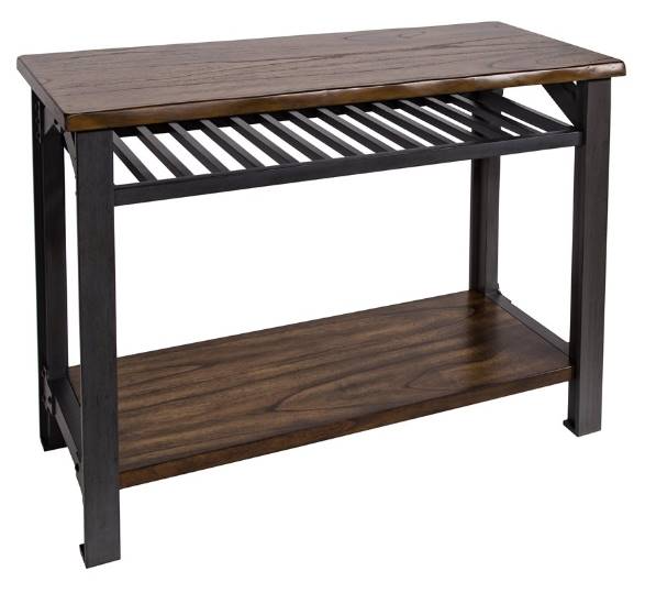 The Bethel Park Sofa Table is crafted with strong mahogany shelves that are finished with a water-based, medium stain and clear coat. A top and bottom shelf offer plenty of room in between and on top for large storage needs. The solid wood legs are painted grey with dry-brushed darker highlights and solidified with metal stud rivets.Read More
