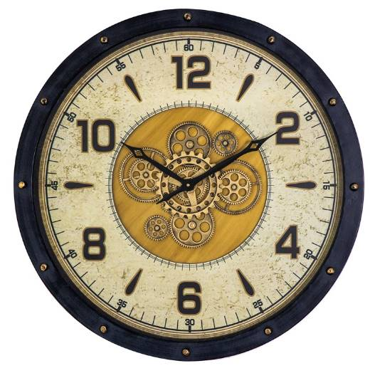 This wall clock's black metal frame is perfectly complimented by the gold face of the clock. Moving gears add visual interest and a sense of the ever-present dynamic motion of time.Read More