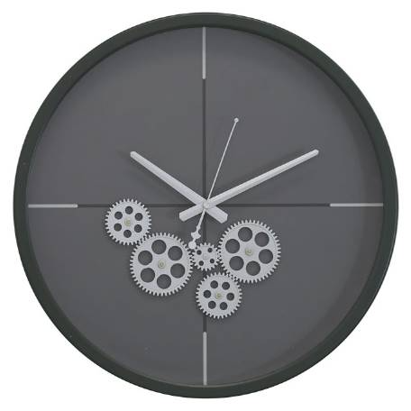 This clean contemporary-styled wall clock features a minimalistic gray face with contrasting steel-finished hands and markers. The black case and glass cover protect the hands and gears. Moving gears create a sense of endless relaxing motion.Read More
