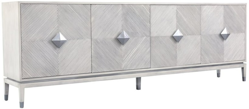 This ultra-modern sideboard won’t fail to make a statement, no matter what room it’s in. A sophisticated piece, it features four square doors with geometric 3D patterns. Pyramid-shaped handles embellish each soft-close door, which conceal shelf space ideal for tucking away fine china, glassware, and linens.Read More