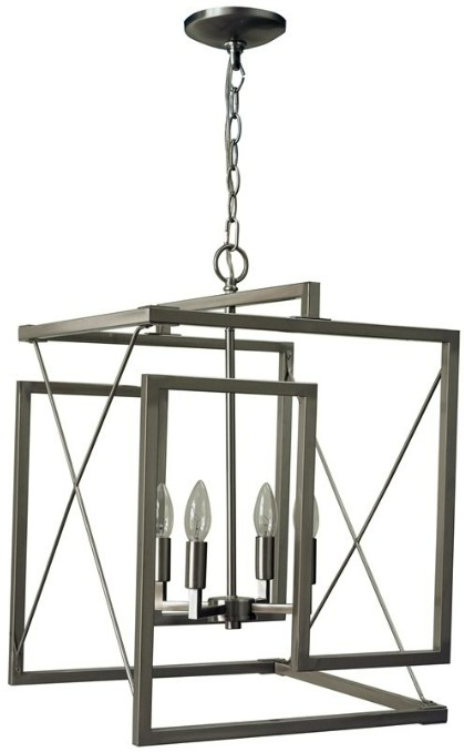 This four-light, ceiling fixture features sleek lines for a contemporary appeal. The rectangular shape of the brushed nickel-finished metal tubing complements the geometric form of this design. The 10' chain and 12' wire enable this piece to be used in a wide variety of spaces.Read More