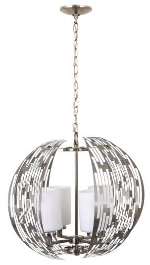 Add additional elegance to your home design, it has a 4-light contemporary chandelier in brushed nickel with patterned panels and smoked glass. Make a bold statement by incorporating this chandelier into your home.Read More
