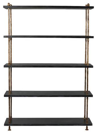 Try to incorporate this bookshelf from the Cedric collection into your home design, it has five shelves in an espresso finish and a metal frame in a forged distressed brass finish.Read More