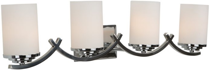 Add a touch of finesse to your bathroom with this contemporary 4-light vanity fixture. The sharp lines and sleek details of this Chrome fixture are complimented by etched White Opal cylindrical glass shades exuding a warm glow when lit. Constructed of steel this vanity light is durable and easy to care for.Read More
