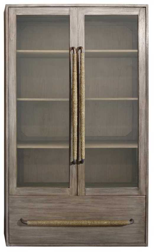 From the Mikel Welch Exposure Collection. A naturally beautiful Mindi veneer in our ash gray finish is paired with solid teak handles with cast metal and hand wrapped seagrass and decorative smoked onyx finished metal corner accents making this cabinet irresistibly gorgeous and imminently versatile.Read More